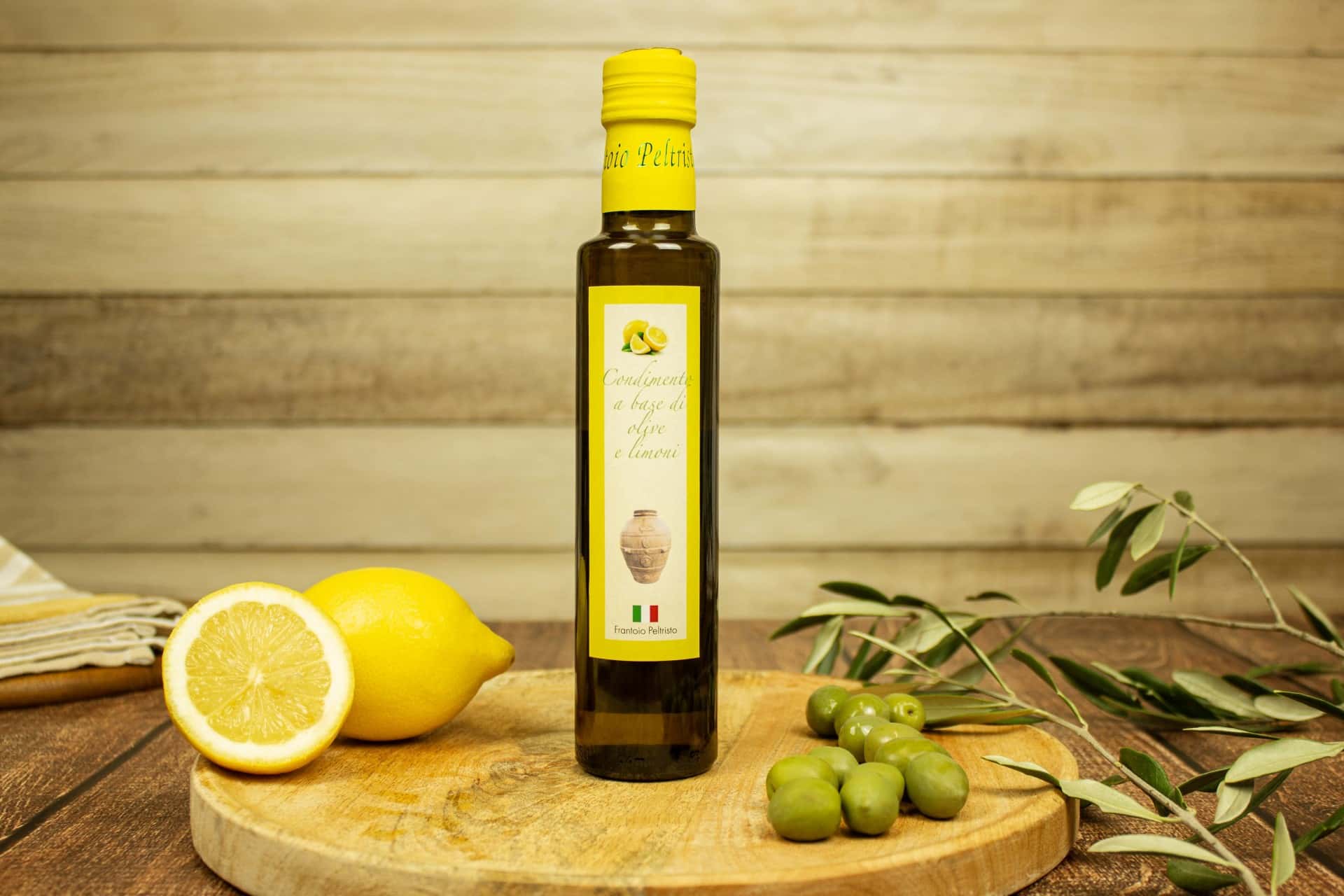 Unser Extra natives Olivenöl mit Zitrone wird im Frantoio Peltristo hergestellt, indem ganze sizilianische Bio-Zitronen mit den Oliven ausgepresst werden - ganz ohne Zusatz von Aromastoffen.