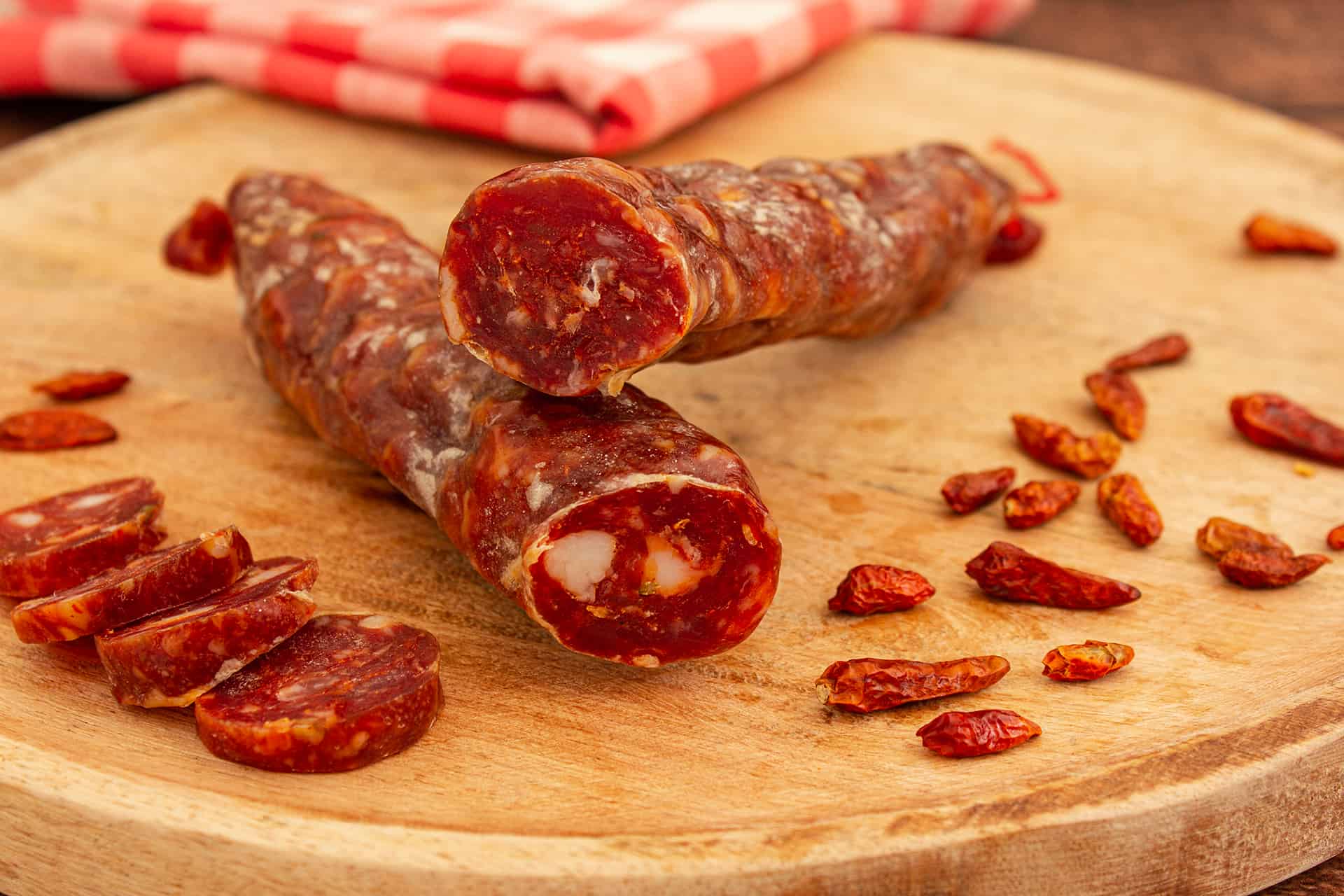 Die Reifung findet über mehrere Wochen in gut kontrollierten, kühlen und feuchten Räumen statt. Durch diese langsame Trocknung entwickelt die Salami ihre typische Konsistenz und das volle Aroma. Die Kombination aus Temperatur und Luftfeuchtigkeit ist entscheidend, um die richtige Reifetiefe zu erzielen und die Schärfe des Chilis optimal einzubinden.